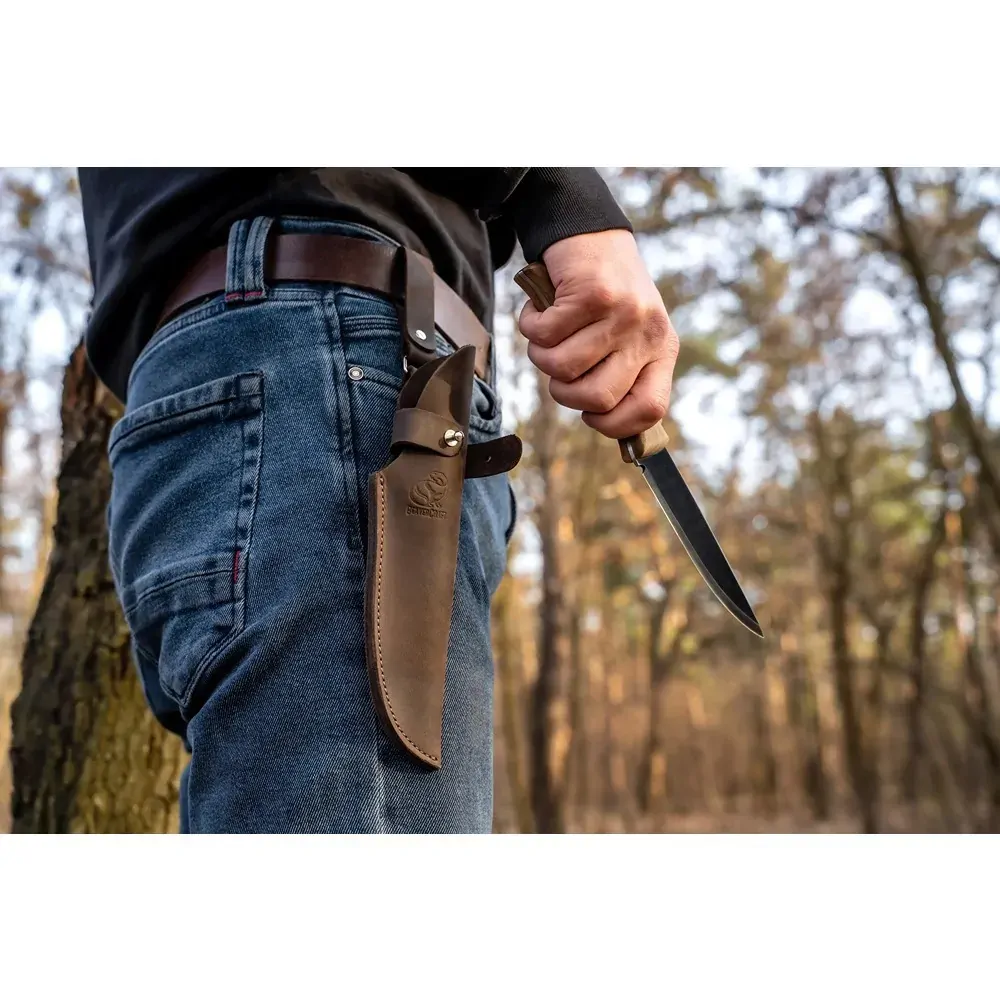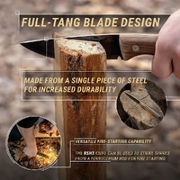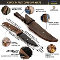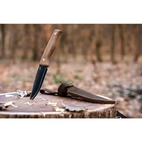 • Carbon Steel Blued-Blade Bushcraft Knife Walnut Handle with Leather Sheath