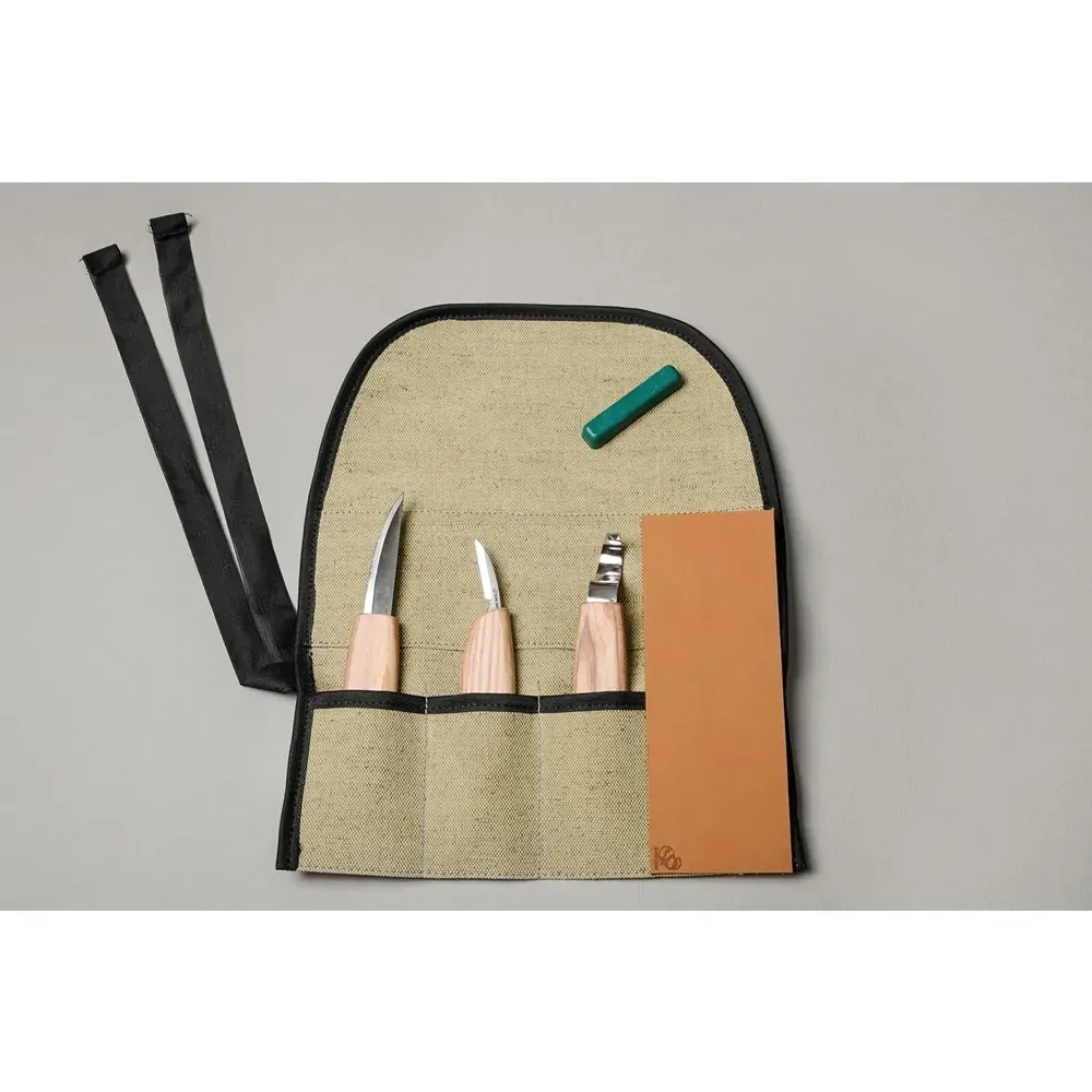 Extended Spoon Carving Set (3 knives in roll + accessories)