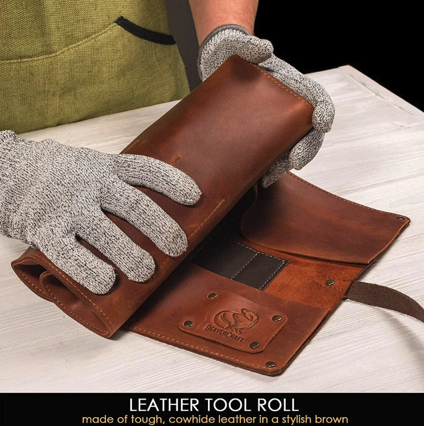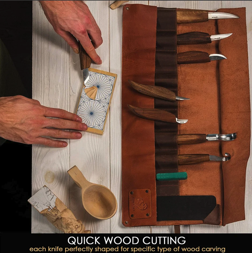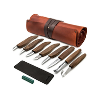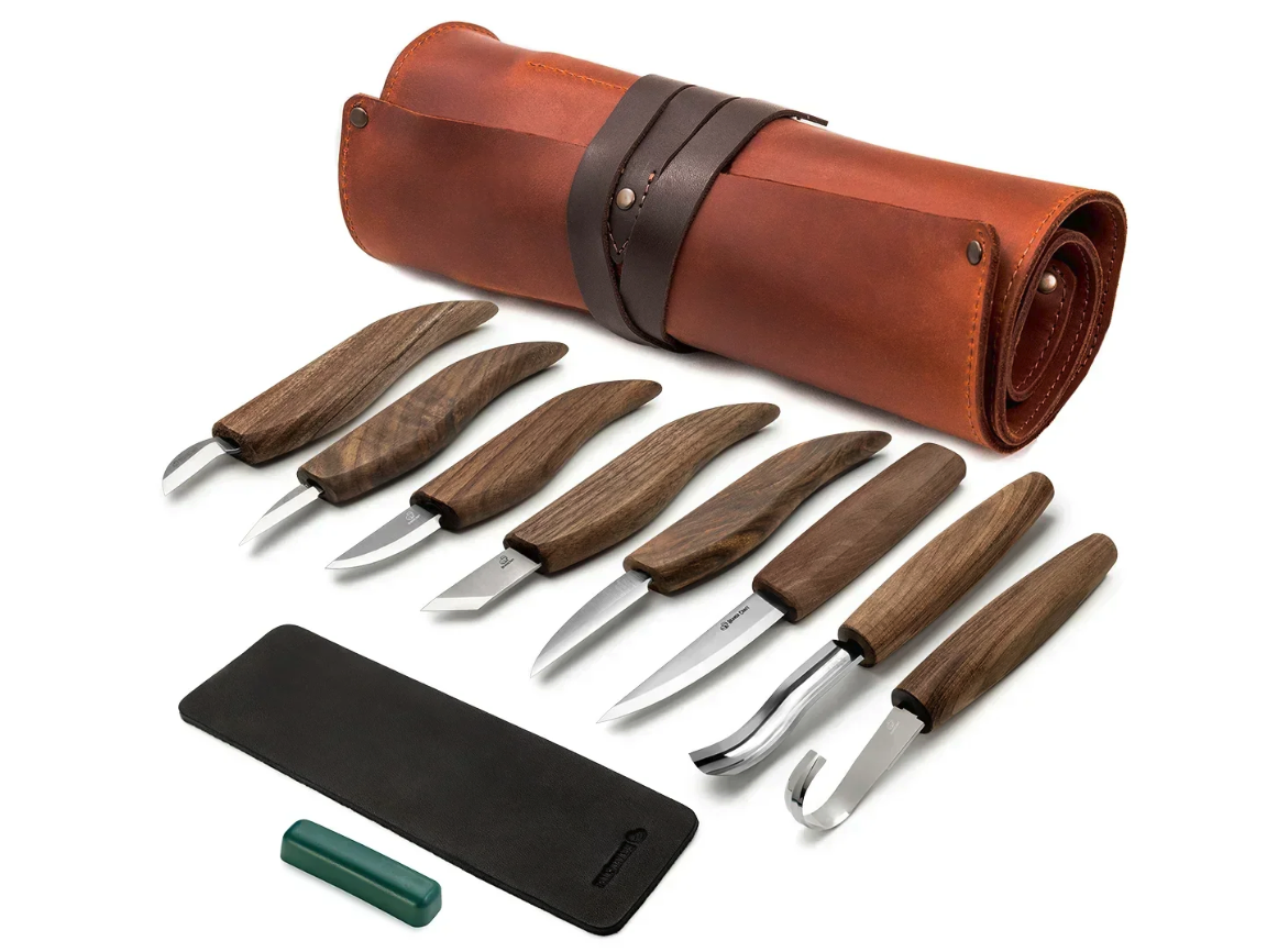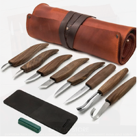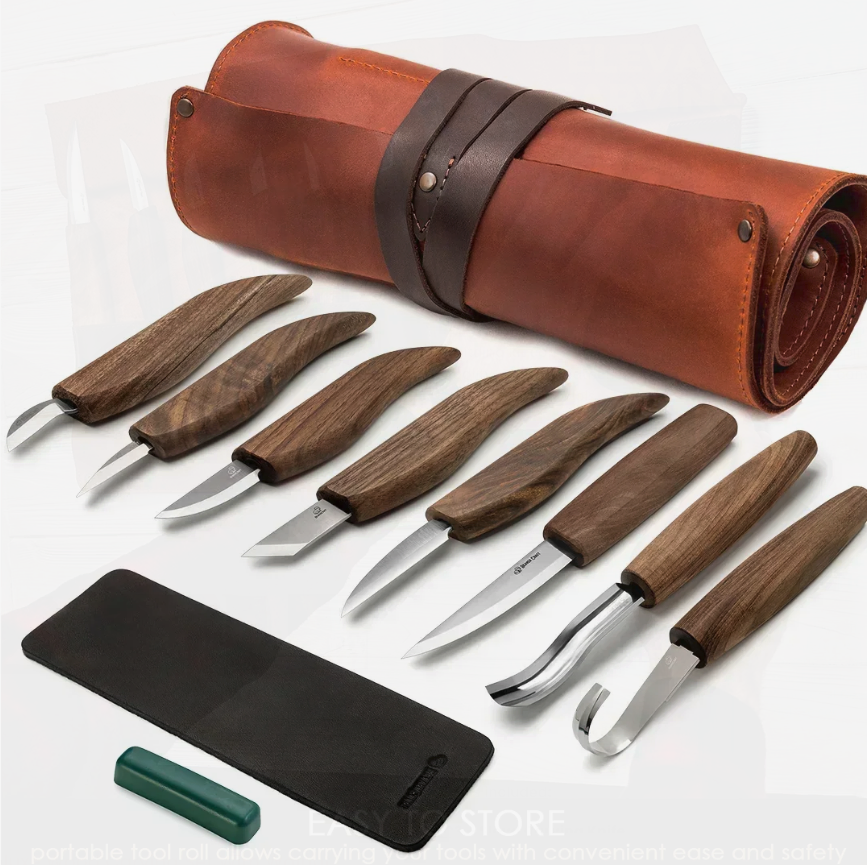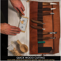• Extended Wood Carving Set (8 tools with Walnut Handles) in Genuine Leather Roll