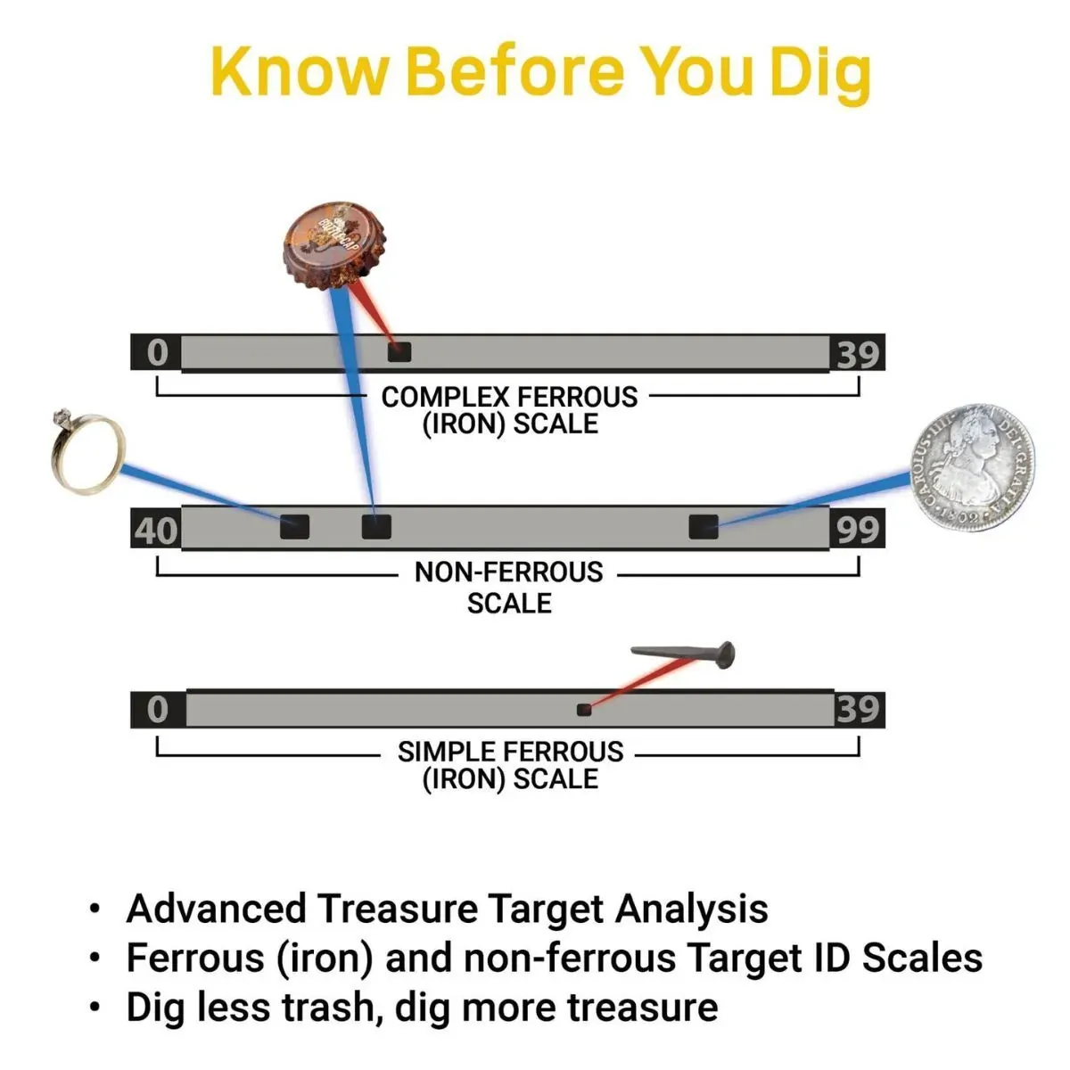 - Iron Audio: Enables users to hear discriminated iron targets, helping avoid digging unwanted flat iron items like bottle caps.