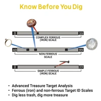 - Three-tiered Target ID scale displays conductive and ferrous properties of metal targets while operating in Multi-Frequency mode.