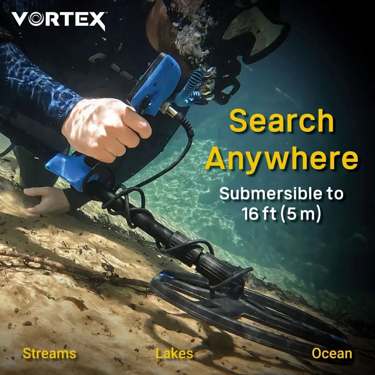 The Vortex series is an innovative and highly-performing metal detector designed for all-terrain use, including underwater. Its advanced technology ensures reliable performance in various conditions, such as saltwater beaches and underwater terrains. Enhance your metal-detecting experience with the ultimate waterproof metal detector!