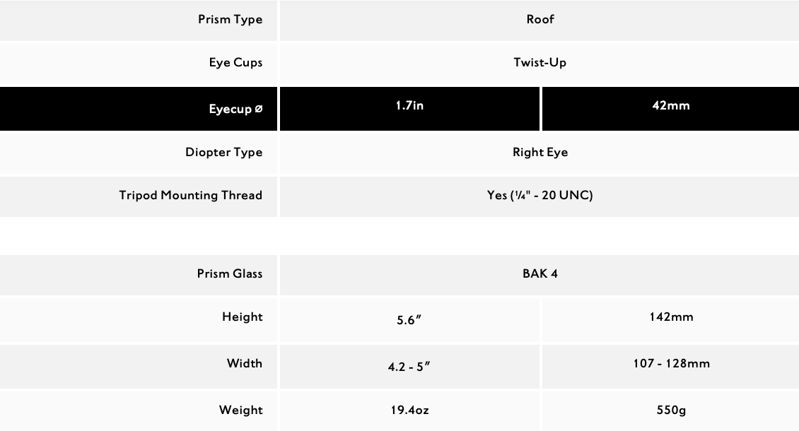 Built from a polycarbonate body with rubber armour, the Vantage binoculars are a lightweight and reliable binocular with easy-to-use features that make them perfect for new nature enthusiasts or when shopping on a budget.