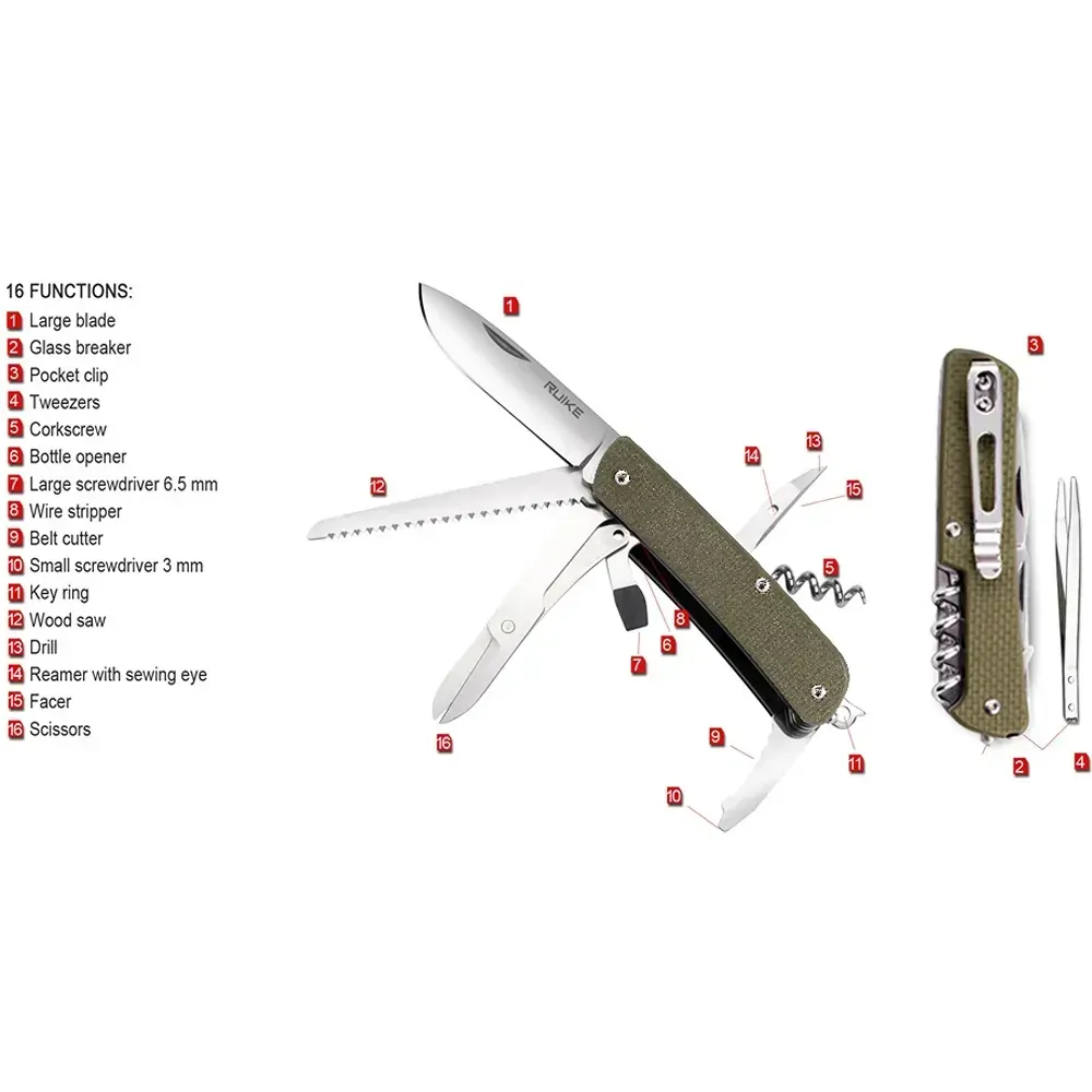 • RUIKE M42-G Multifunction Folding Knife, Green