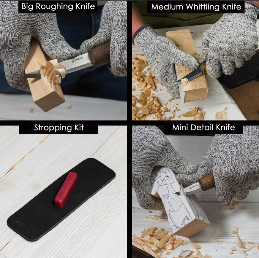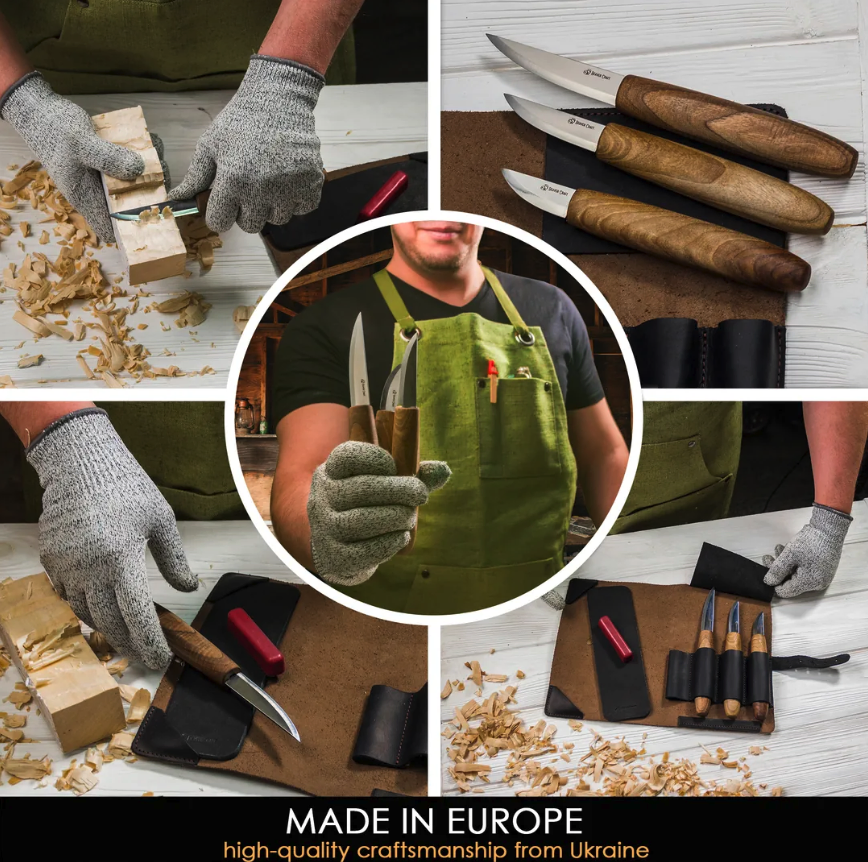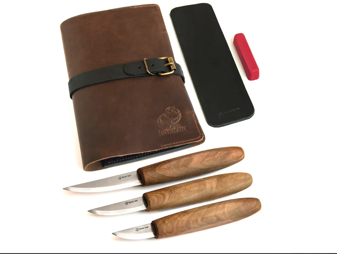 • Sloyd knives Carving Set (C1X + C3X + C4X + honing acc) in Genuine Leather
