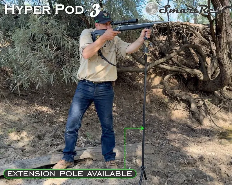 Be a better hunter - a message from the designer: We designed Hyper Pod 3 for the purpose of making a hunter more accurate in more positions than just laying down prone on a bipod. The Hyper Pod 3 will not hinder your mobility and ability to trek. We also had in mind to not slow your set up time as a shooter. With Hyper Pod 3 on your firearm you should be able to: