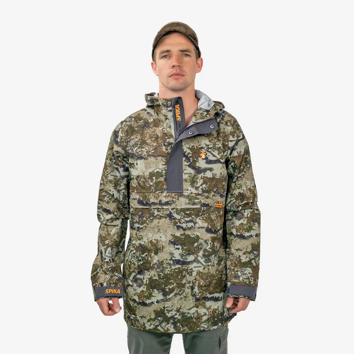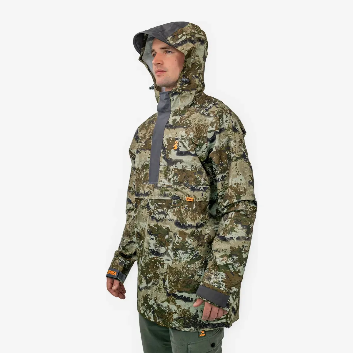 The Spika Buckland Jacket is ideal for any hunt. Keep it in your kit for rainy days or as your protective top layer. Its lightweight fabric bonded with our HYDROSHIELD weatherproof membrane makes it waterproof, windproof and breathable. The relaxed fit keeps you covered and protected from the elements while remaining comfortable and unrestricted. Keeping simplistic design for the weight conscious. The Anorak style promotes easy ventilation while the adaptive hood packs down into its front stowaway pouch for easy storage. A feature-rich staple in your hunting wardrobe for when the weather turns unexpectedly and you need protection from the elements.