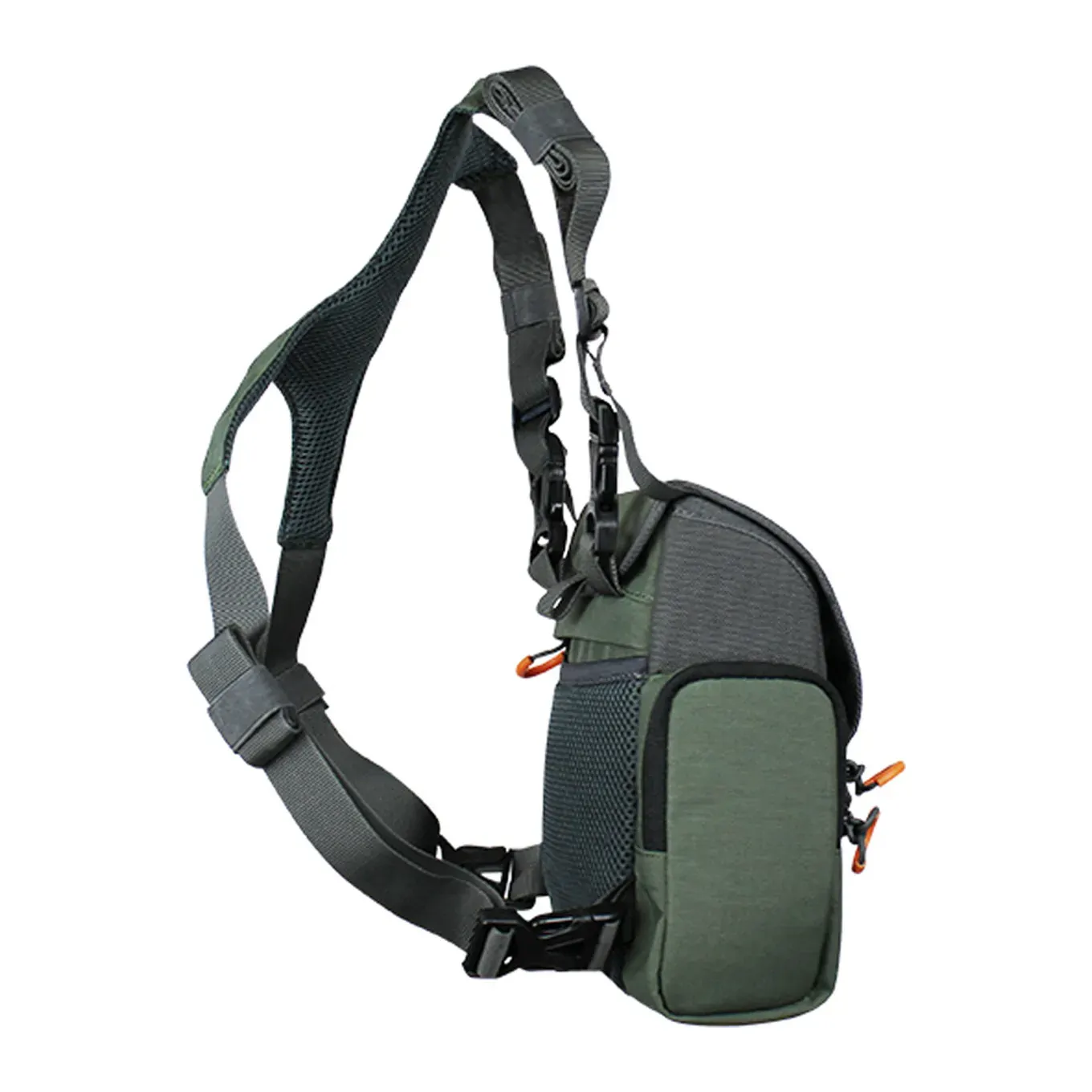 Drover Bino harness is for serious spot and stalk hunters optimising comfort, accessibility and functionality. The main compartment protects your optics while the magnetised lid secures your gear whatever your hunting style. Generous side and front pockets hold your additional essentials close, all while being supported by a padded reinforced four-point body harness.