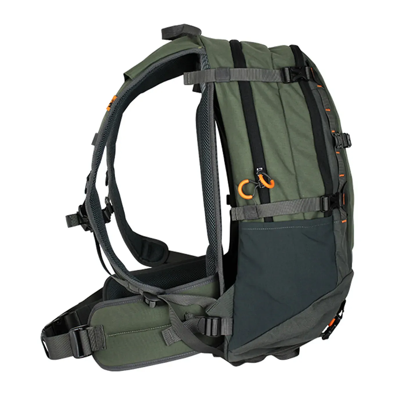 The Spika Drover 25L Day Pack is your ultimate hunting partner for single day trips hunting, fishing, hiking or just getting outdoors! With its tough technical and well-thought-out design this pro-pack allows you to easily access all your necessary gear. The dual main compartments feature two-way zippers and provide ample space for extra layers, camera gear, food, water and accessories. The floating air mesh harness promotes air circulation while the durable waist belt and load stabilizing frame offers ultimate comfort even during long hikes. The Drover 25L Day Pack comes complete with a rifle holder and rain cover, making it perfect for all weather conditions. Its external tie points, multiple compartments, internal pockets and front stash pocket make organizing your gear a breeze. Additionally, the pack includes a 2L Drover bladder and the exterior is constructed with durable 500 denier DWR treated nylon body and reinforced base, industry-leading Duraflex hardware and YKK zippers.