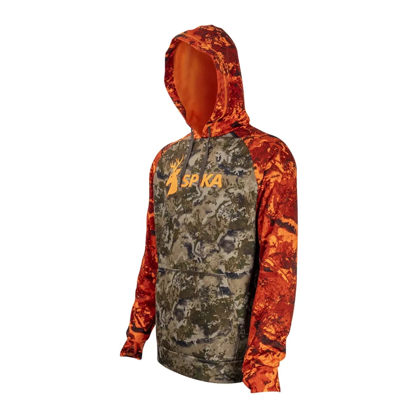 The Spika Go Classic Hoodie in Biarri Blaze Camo combines our comfy and warm Go Classic Hoodie with our Biarri Blaze Camo for safety. Made from breathable 100% polyester, this hoodie will keep you warm and comfortable on even the chilliest of days or nights.The kangaroo pocket on the front offers a convenient place to carry your essentials. If you are looking for safety when youre chasing deer the Go Classic Hoodie in Biarri Blaze is the ideal choice for any outdoor adventure.