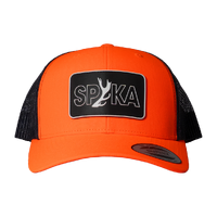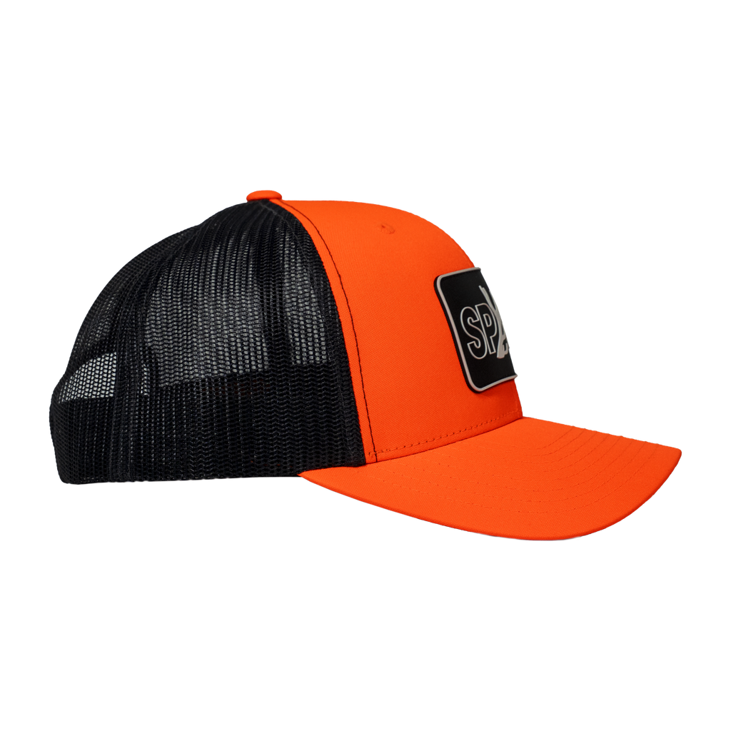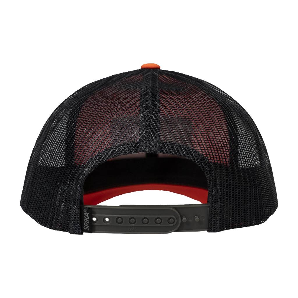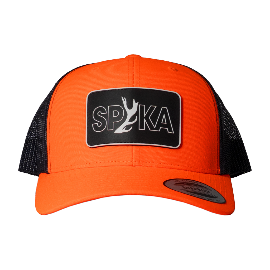Perfect for everyday wear, the Spika Trucker Cap - Cast Antler combines comfort and classic outdoor style. Featuring a Blaze Orange front panel and brim with a black mesh back for breathability, its a go-to cap that lives on your head and rests on the dash. The front rubber patch shows your style with the unique SPIKA Cast Antler logo design and represents the outdoors lifestyle wherever you take it.