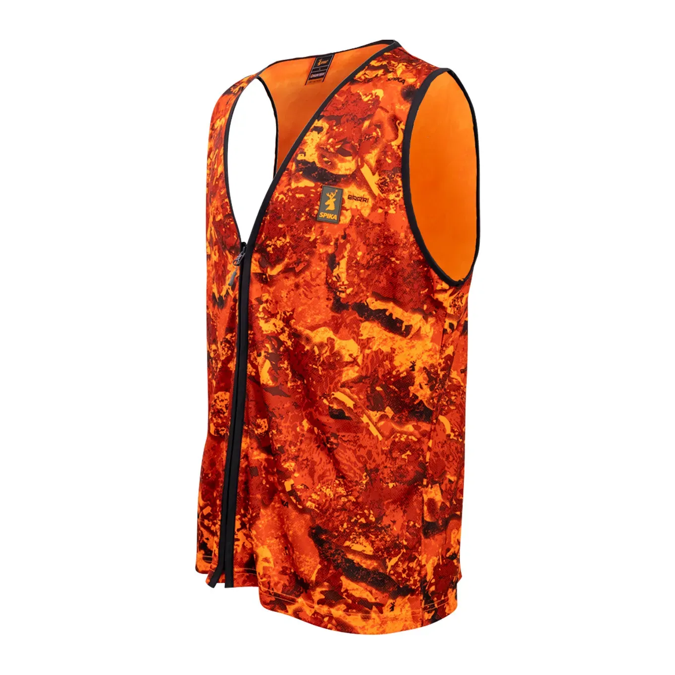The Spika Ranger Vest in Biarri Blaze Camo is a must-have for any hunting trip. Designed to pack down into your bag but most importantly for throwing it over the top of your gear for high visibility and safety when out on a hunt. The zippered front makes it easy to whack on and the lightweight, breathable material ensures you stay comfortable all day long. The Biarri Blaze Camo pattern is visible to the human eye but for deer it is indistinguishable from our normal camouflage pattern. Whether youre an experienced hunter or a beginner, the Spika Ranger Vest will convert any hunting garment into a safer one.