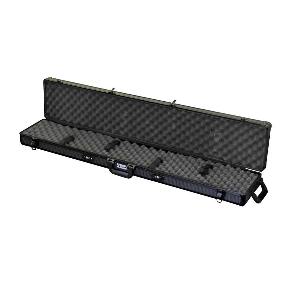 The Rifle Case by Spika is a durable aluminium solution to securely store and transport one rifle. It features combination locks and padlocks for added security, as well as an egg foam lined inner and straps to fasten your firearm safely inside. Store and transport your rifle safely and securely in a Spika firearm case.
