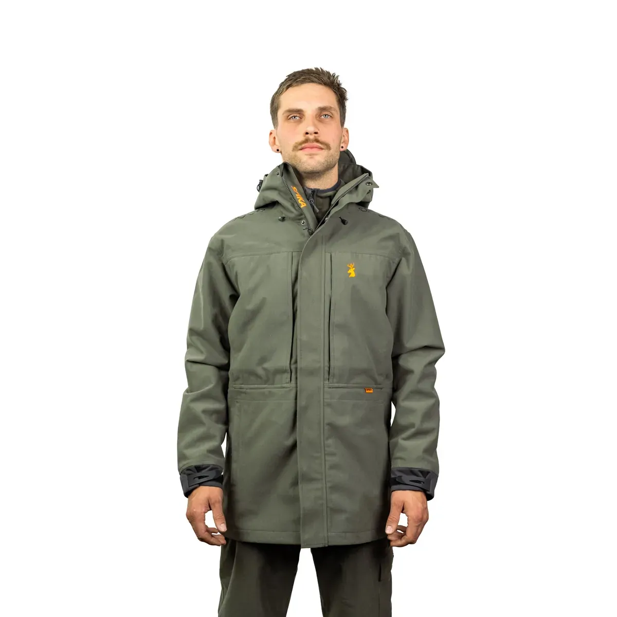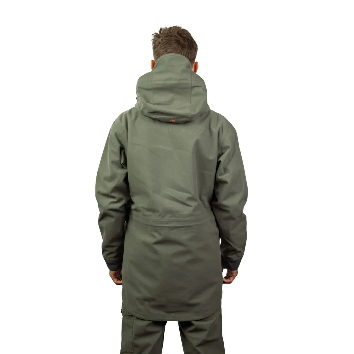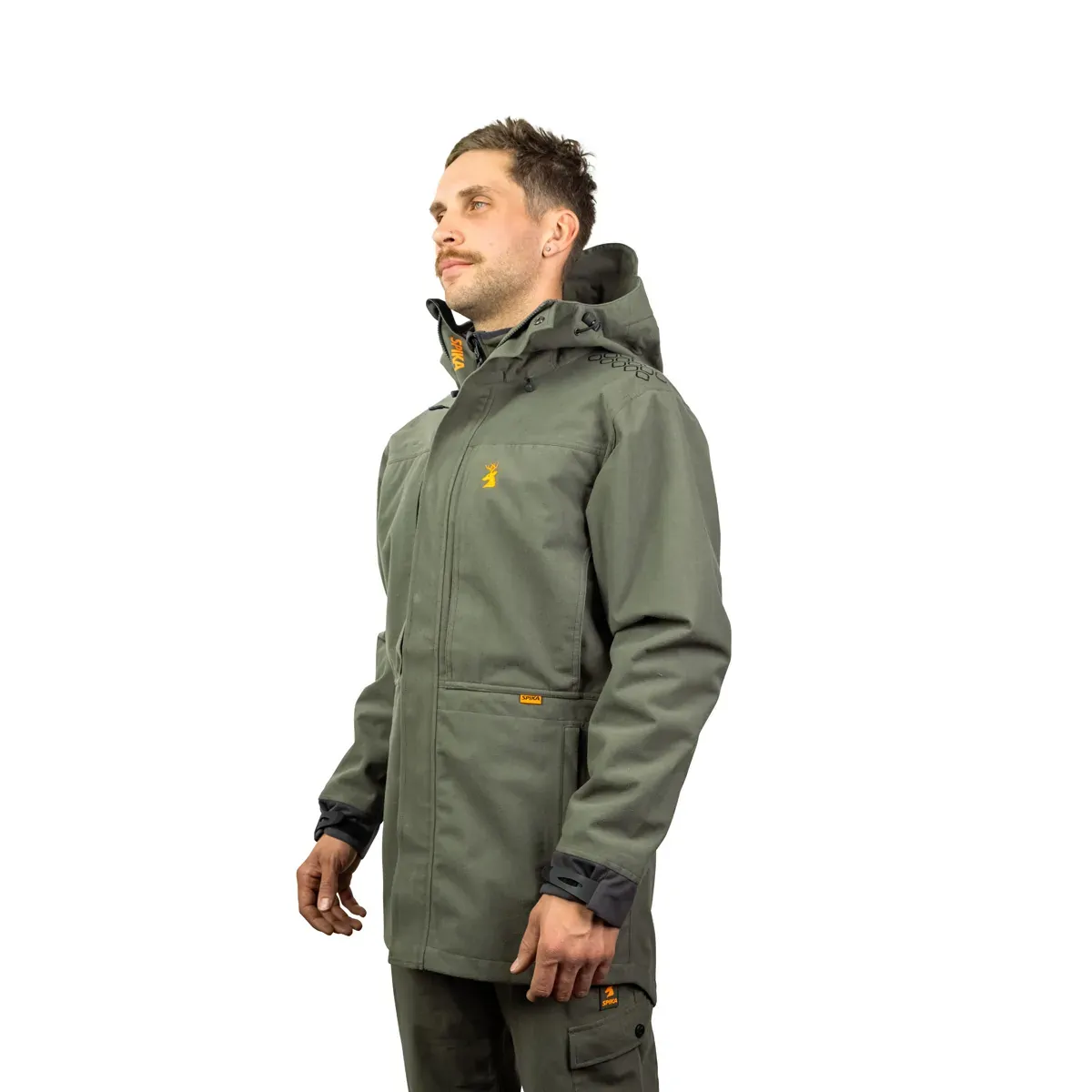 The Spika Stalker Jacket will keep you warm, dry and quiet. Made for the hunter yet equally welcome on the farm. With a relaxed fit, hand warmer pockets, chest pocket, Velcro cuffs and cinched hood for when the weather turns. The longer cut will keep your back dry when sitting down resting or glassing while our non-slip shoulders prevent your backpack shifting under load.