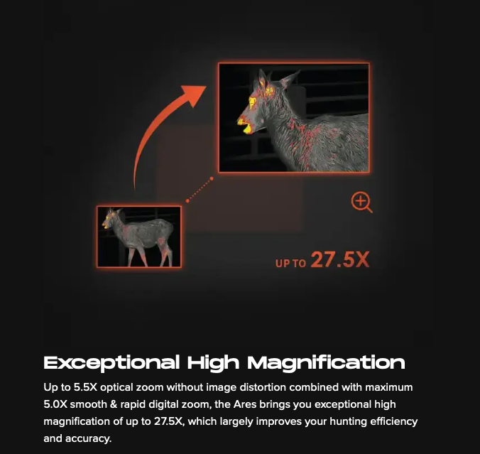 The Ares 2.0 Series takes thermal imaging to a new level, offering lighter, clearer, and longer-lasting performance for hunters who demand precision. Equipped with an advanced NETD ? 18mK sensor, it captures even the finest temperature differences, revealing intricate details for enhanced target detection. Its AI-powered calibration ensures image stability, adapting to changing environments with every use. With an impressive 18-hour battery life and rapid 3-second startup, the Ares 2.0 is ready to dominate any hunting scenario. The upgraded compact laser rangefinder delivers accurate distance measurement, while the sleeker, 10% lighter design improves mobility. Additional features include a silent lens cover, 64GB internal memory, IP67 waterproof rating, and seamless field-of-view control. With its unmatched clarity, long-range capabilities, and durability, Ares 2.0 empowers hunters to conquer every shot.