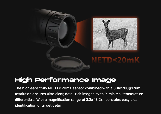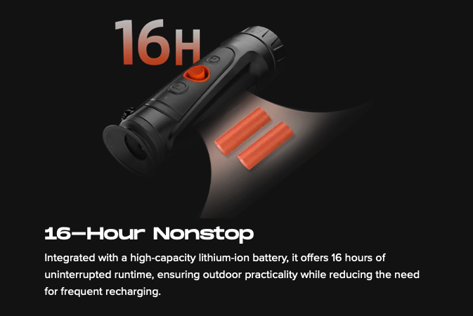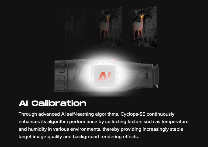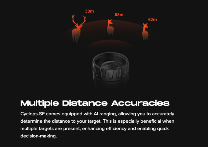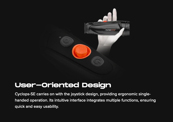 Cyclops 335 SE is the latest thermal imaging monocular in our Cyclops series, featuring a NETD <20mK detector that delivers excellent image quality and AI self-learning algorithms that provide increasingly stable target image quality. It has a 35mm lens with up to 1800m detection range, allowing you to easily target your game, whether in open fields or dense forests. Additionally, it integrates more advanced features and optimizes usability to enrich the hunting experience.
