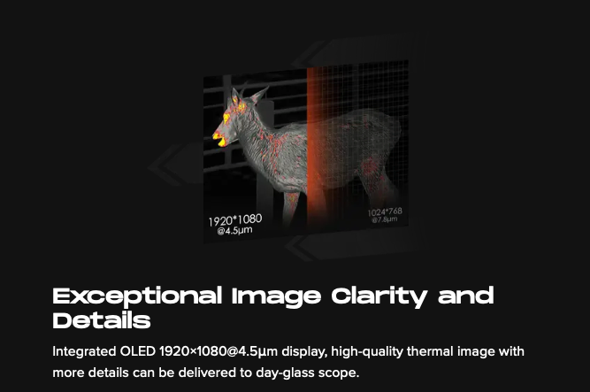 Hunt Pro’s key innovation is its NETD?15mK thermal sensitivity, along with the switch from a built-in to a replaceable, rechargeable battery. Image clarity is further enhanced with a 1920x1080 OLED display. Whether in challenging weather or complex environments, the Hunt Pro captures even the smallest temperature differences, ensuring outstanding performance.