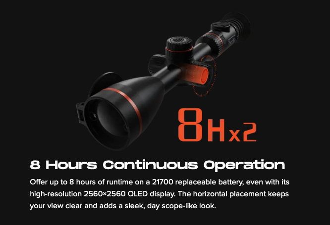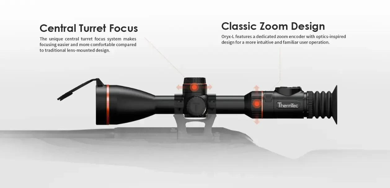 The Oryx-L 650 takes performance further with a highly sensitive thermal NETD ?15 mK sensor and vivid OLED display for precise long-range observation. Featuring the ThermTec AutoSight System (TASS) for seamless zoom and built-in laser rangefinder for pinpoint accuracy, it delivers precise targeting and reliable shots. With extended detection up to 2,600 meters, higher magnification, and durable battery life, the Oryx-L 650 is built for hunters who demand clarity and accuracy at greater distances.