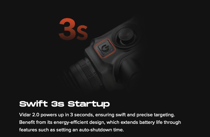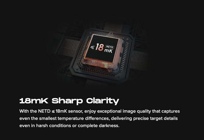 The Vidar 2.0 Series Thermal Imaging Sight, designed for exceptional performance in any environment. Featuring a NETD ? 18mK sensor, it captures precise details even in complete darkness, while AI calibration ensures consistent image stability. With an impressive battery life of up to 18 hours and a rapid 3-second startup, you’ll never miss a moment.