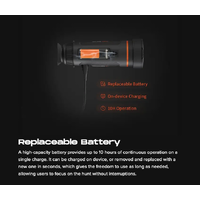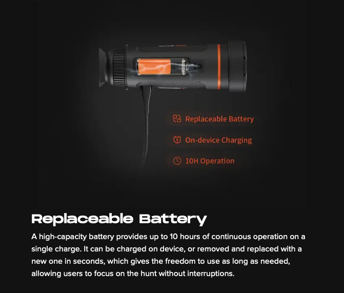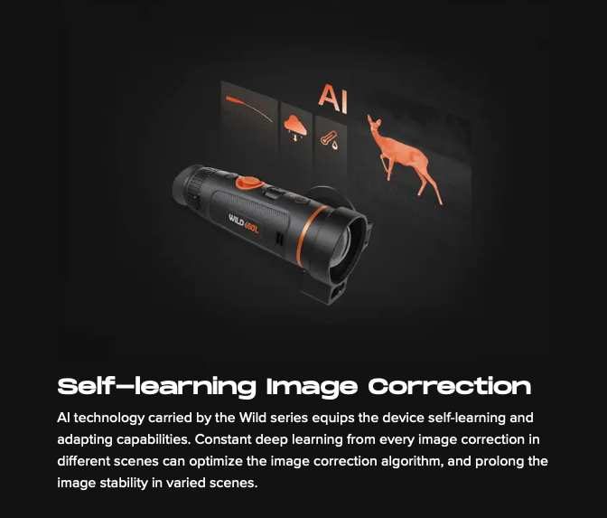 The Thermtec Wild offers stunning image quality with its highly sensitive thermal imaging sensor (NETD?18mK) and larger aperture optics, ensuring detailed recognition even in harsh weather. Designed for one-handed operation, its ergonomic finger wheel focusing and joystick control suit both left- and right-handed users. The LRF Boost technology, combining a compact laser rangefinder and AI, enables precise multi-target ranging. AI-driven self-learning image correction optimizes performance in varied scenes, while the reinforced magnesium alloy housing and rubber coating ensure durability. Features include a powerful 1-4X digital zoom, a replaceable high-capacity battery providing up to 10 hours of use, and an ultra-long detection range up to 2,600 meters. The device integrates seamlessly with the "ThermTec Outdoor" app for sharing, updating firmware, and adjusting settings. Additionally, the ergonomic joystick and comfortable hand strap enhance usability, with stable imaging for at least an hour after correction.