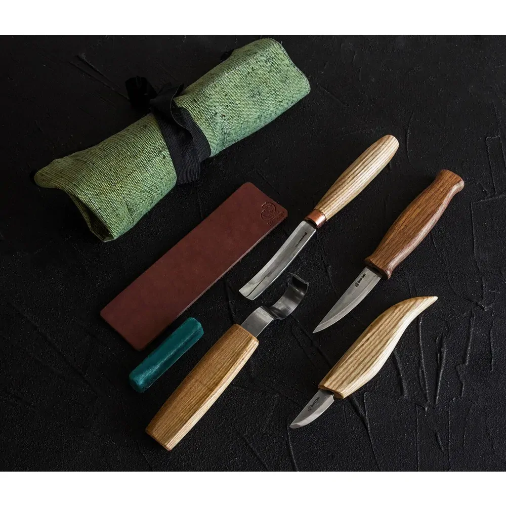 Spoon and Kuksa Carving Professional Set (4 tools in roll + accessories)