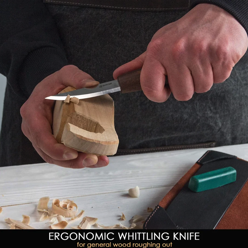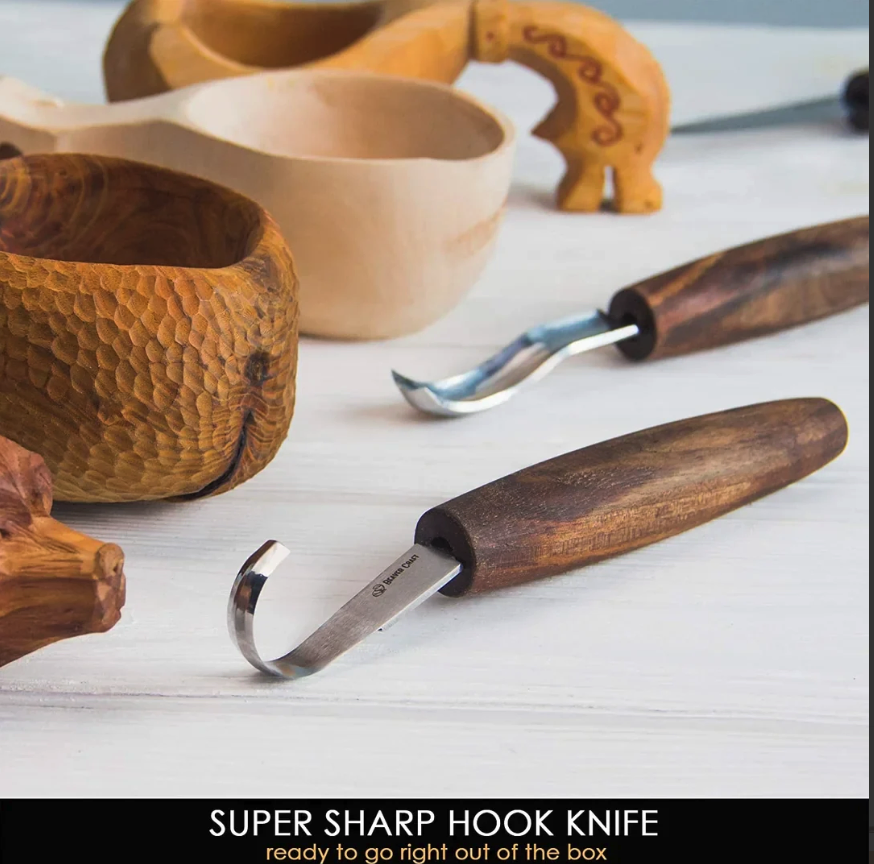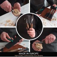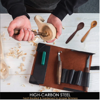 • Spoon Carving Set with Gouge (SK5RX + K8a/14 + C1X + honing acc) in Genuine Leather Roll